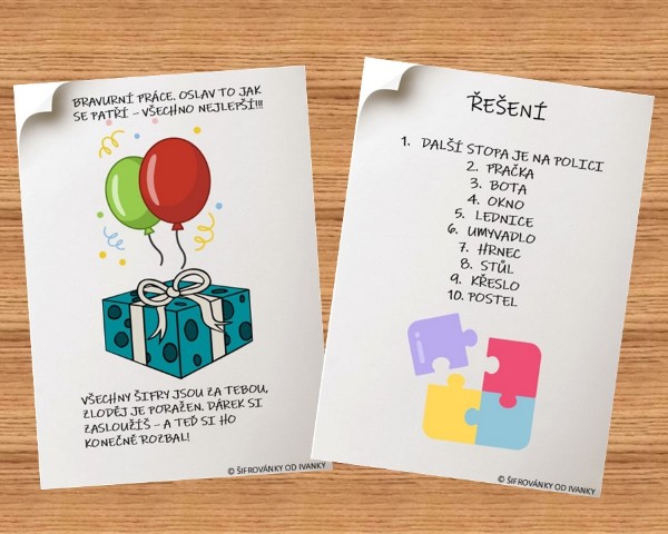 Vydejte se s naší šifrovánkou po stopách ukradeného dárku. Oslava nemůže začít, dokud ho nenajdete! Rozluštěte šifry, odhalte stopy a zjistěte, kdo sebral překvapení.
